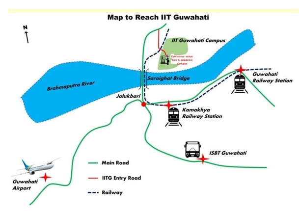 From Kamakhya Railway Station: Take a direct auto/cab to IIT Guwahati (₹300–400) or walk 100 m/ take e-rickshaw to Assam